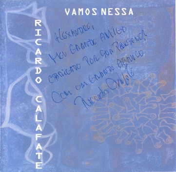 RICARDO CALAFATE é um amigo de longa data. Antes mesmo de conseguir montar meu primeiro grupo profissional, Ricardo já estava na estrada com o sensacional grupo de chorinho Rio Antigo, onde ele tocava bandolim. Músico dotado de uma técnica excelente, consegue colocar o coração acima de tudo. Em 2005 ele lançou seu CD "Vamos Nessa", em tiragem limitada, gravado em seu próprio estúdio (Umuarama) e com a participação de ótimos músicos. Nesse disco ele toca guitarra, bandolim e violão. Dentre as suas composições, foi uma grata surpresa ouvir ISADORA, feita para sua filha e que é de um apurado requinte harmônico e melódico. |